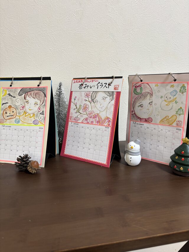 12か月の様々な手描きイラストから癒しや喜びで1年間側において貰えたらと嬉しいです。