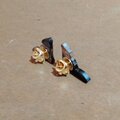 【特別価格】ピアス 白&黒仲良しネコ 木彫り 両耳 黒柿(クロガキ) 各1点ものとてもいい風合い!