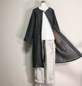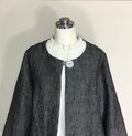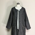 【厚手リネン】リネンのロングコート 猫ポケ◆デニム調ブラック◆フリーサイズ(厚手15番手、リネン100%)