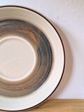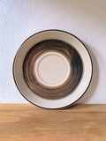 ライトベージュに濃いブラウンのラインが施されたデザインは、シンプルでありながらも洗練されています。釉薬の発色に個体差があり、まるで1点ものの作品のような表情を楽しめます。