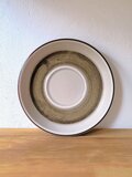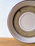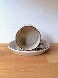 ライトベージュに濃いブラウンのラインが施されたデザインは、シンプルでありながらも洗練されています。釉薬の発色に個体差があり、まるで1点ものの作品のような表情を楽しめます。