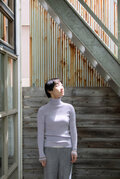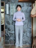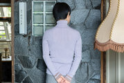 【ラベンダー染め】Organic Cotton無縫製 Cuff borderリブタートルセーター