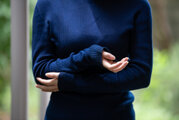内側に折るのも首元がすっきりとしてお勧めです。年齢関係なく多くの方のベーシックとなれるセーターです。