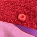 赤の刺繍柄、ツィード、幾何模様に赤いレトロなボタンを飾りました。
