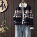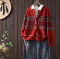 レディース ニットカーディガン ロング丈 ホーンボタン ジャカード レトロ 柄 オーバーサイズ ゆったり 新作 秋冬 ボタニカル アラン模様 北欧 森ガール 大人カジュアル #編み ロング丈 アウター 秋冬 2025 春 新作 ボタニカル 大人可愛い