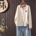 レディース ニットカーディガン ロング丈 ホーンボタン ジャカード レトロ 柄 オーバーサイズ ゆったり 新作 秋冬 ボタニカル アラン模様 北欧 森ガール 大人カジュアル #編み ロング丈 アウター 秋冬 2025 春 新作 ボタニカル 大人可愛い