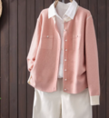 着るだけで大人かわいい雰囲気で存在感のあるニットカーディガンです、