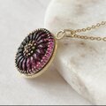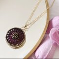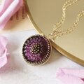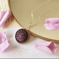 深紫のチェコガラスボタンネックレス|花モチーフ・サージカルステンレス製・長さ調整可能