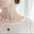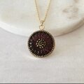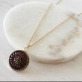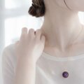 光を受けてやわらかく輝く、深紫のガラスボタンをあしらったネックレスです。