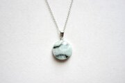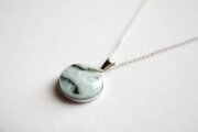 白とブルーのマーブル模様のレジンに白と黒でラインを引いた、天然石風の模様が独特のニュアンスを生んでいるペンダント。