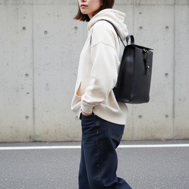 無駄を削ぎ落としたシンプルな形に、真鍮金具のアクセントをひとつ。背負ったときのフォルムが美しく、どんな装いにも馴染むミニマルなデザインに仕上げています。