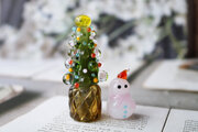 ガラス製のとっても小さなクリスマスツリーと雪だるまです。