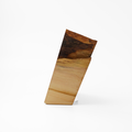 本作品では素材感を活かすことを目的としているため、加工しすぎないように加工するという、今までの家具や小物の製作とは全然違う考え方で製作されています。迷いましたが割れもシミもあえてそのまま残しました。天然丸太の割れは使用環境によっては進行する可能性もありますが、そういう自然現象も含めて木材らしさや素材感を楽しんでいただけたらと考えています。