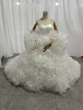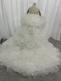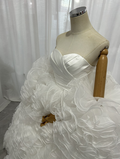 実例写真!ウェディングドレス ベアトップ フリル袖 ラッフルフリル ボリュームドレス 華やか 結婚式