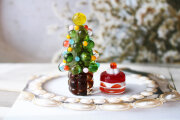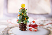 ガラス製のとっても小さなクリスマスツリーとケーキです。