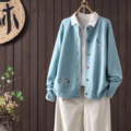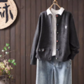 レディース ニットカーディガン ロング丈 ホーンボタン ジャカード レトロ 柄 オーバーサイズ ゆったり 新作 秋冬 ボタニカル アラン模様 北欧 森ガール 大人カジュアル #編み ロング丈 アウター 秋冬 2025 春 新作 ボタニカル 大人可愛い