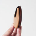 裏地がなく、革の断面は裏側と同じ処理剤で磨いたシンプルなデザインです。