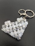 ✿ビーズハートキ—ホルダー☆ホワイト×シルバー