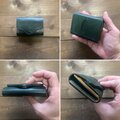 不意な開閉を抑えるためフロントボタンは留める力の強いドットホックボタンを使用しておりカードスロットの付いたコイン入れにはマチがあるので使う時は大きく開いて視認性を上げています。