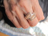 届きました。ありがとうございました。2つともとても素敵なリングです。フォッシルは黄色い花びらが散っているようで、ブルーの方は深い宇宙が広がっているようで、どちらも個性的な色とデザインで気に入りました。身につけるとキュンとして楽しくなります。本当にありがとうございました。