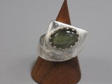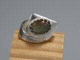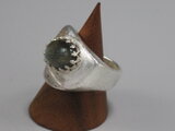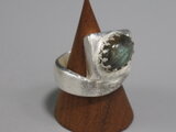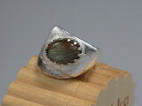 リングのサイズは14号、重さは16g、最大幅は20mm、手のひら側は8mm、金属部分は純銀です。