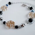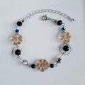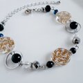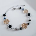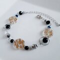 アンティーク風アクリルビーズとサークルフープのブレスレット(シルバー×ブラック)