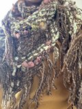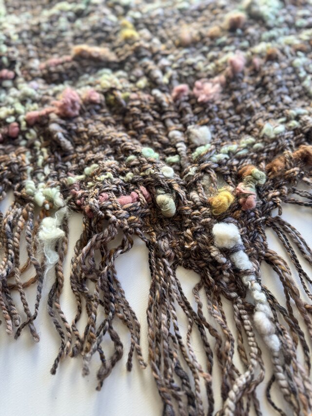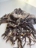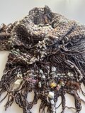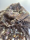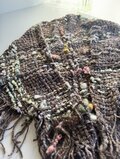 手紡ぎ毛糸で織ったストール ブラウン&アートヤーン