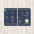 星と月と太陽のデザインイラストと仲よしにゃんこのシックなデザインの両面印刷手帳型iPadケースです。