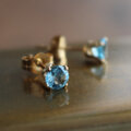 澄みわたる青空のように清らかで、凛とした輝きを放つスイスブルートパーズをシンプルな一粒スタッドピアスにしました。