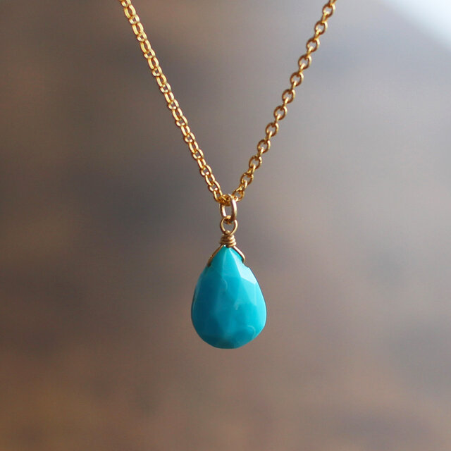 ✨際立つターコイズブルー✨ キングマンターコイズ<ペアシェイプ・ブリオレット>のネックレス(K14GF)