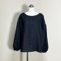 カラーリネン◆エアスリーブブラウス◆黒◆フリーサイズ(中厚、リネン100%)