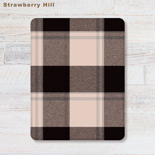タータンチェック iPadケース ペン収納 軽量 背面クリア あいぱっどけーす スタンド機能