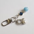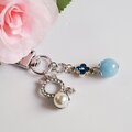 ~★アクアマリンと猫チャーム・クローバーの天然石キーホルダー★~