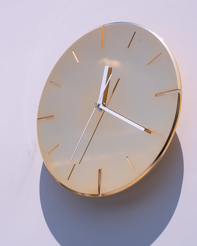 創業100年のめっき技術により、表面にはホンモノの金属を形成。差し込むひかりや照明の変化、朝・昼・夜のひかりの移ろいによって、針を読むというより感覚的に時の流れを感じることができます。