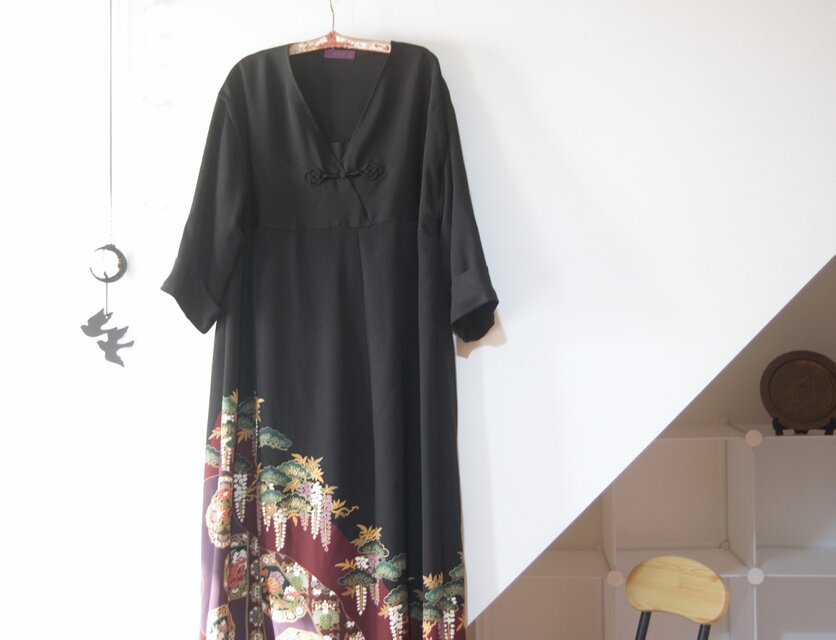 着物リメイクの作品を初めて購入しました。留袖の柄や刺繍は重厚感があり綺麗ですがワンピースに仕立てると重たく感じるのではと心配していました。作品が届き手にした瞬間とても軽く驚きました。70代後半で着物を着ることが辛くなってしまった母も、これなら楽に着られると喜んでくれました。作品サイズは詳細に掲載していらしたので安心でしたが、総重量を掲載して頂くともっと購入者も増えるかとお節介ながらの感想です。