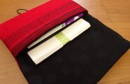 内袋は地紋を織り出した黒を持ってきました。2カ所に分かれるようにしたので便利にお使い頂けそうです。