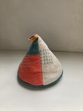 ナチュラルカラーのリネンを組み合わせた、テトラ型の鍋つかみです。