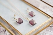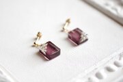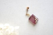 赤紫のレジンにパールとブリオンをあしらった、シンプルながらも可憐なピアス。