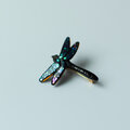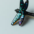 羽根の部分に青貝を貼り、晴れやかなブローチに仕立てました。