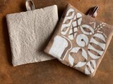 染料化柿渋を型染めで染めました。楽しい食卓のお供に