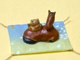 約9cm×7cmの座布団にのせたところです。