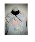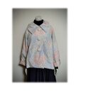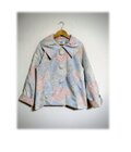 43*大島紬 新作 ジャケット 昭和レトロ 着物リメイク 薔薇柄 ブルー系