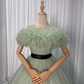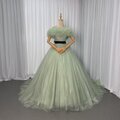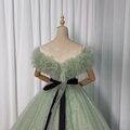 美品!カラードレス ミントグリーン 取り外しオフショルダー サッシュベルト シークインチュール ロングトレーン 花嫁