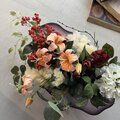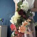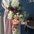 色鮮やかなブルー系の紫陽花が一足早く部屋の中で咲いたようで、部屋が一段明るく華やぎました。 とても素敵なブーケを作って頂き、どうもありがとうございました!