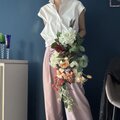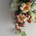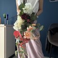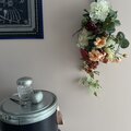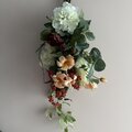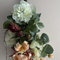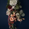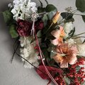L80cmのロングガーランド!くすみレッドとオレンジの草花を使ったスリムなスワッグブーケ。テーブルピースにも
