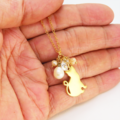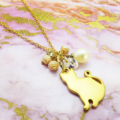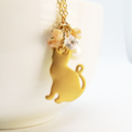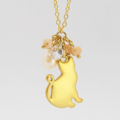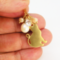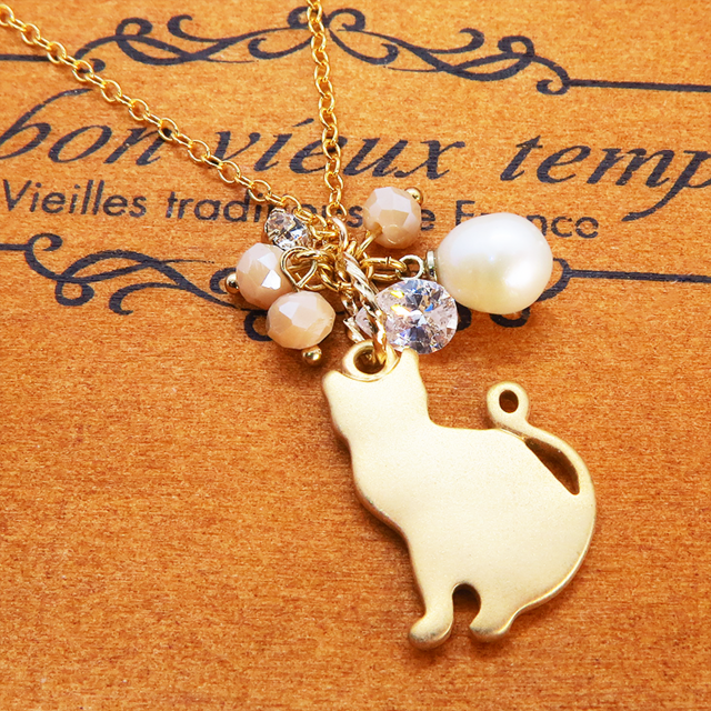 14KGF ゴールド 猫シルエットモチーフのネックレス 淡水パール キュービックジルコニア
