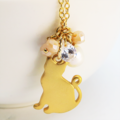 ゴールドのシルエット猫モチーフが胸元を明るく華やかに彩ります