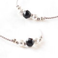 カットがキラリと輝くモリオンに細かな凹凸が味わいのあるシルバー色のラヴァを合わせ、アクセントにメタルビーズを添えてグレー色のシルクコードで繋いだシックな雰囲気のショートネックレスです。
