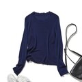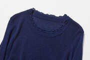 • こだわりのディテール: やや開きの広いクルーネックで首元をすっきり見せ、袖口と裾には可愛らしいピコデザインをあしらいました。