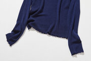 すっきり女性らしいシルエット。肌に寄り添う、軽くて暖かなハイゲージニット 青 251102-2
